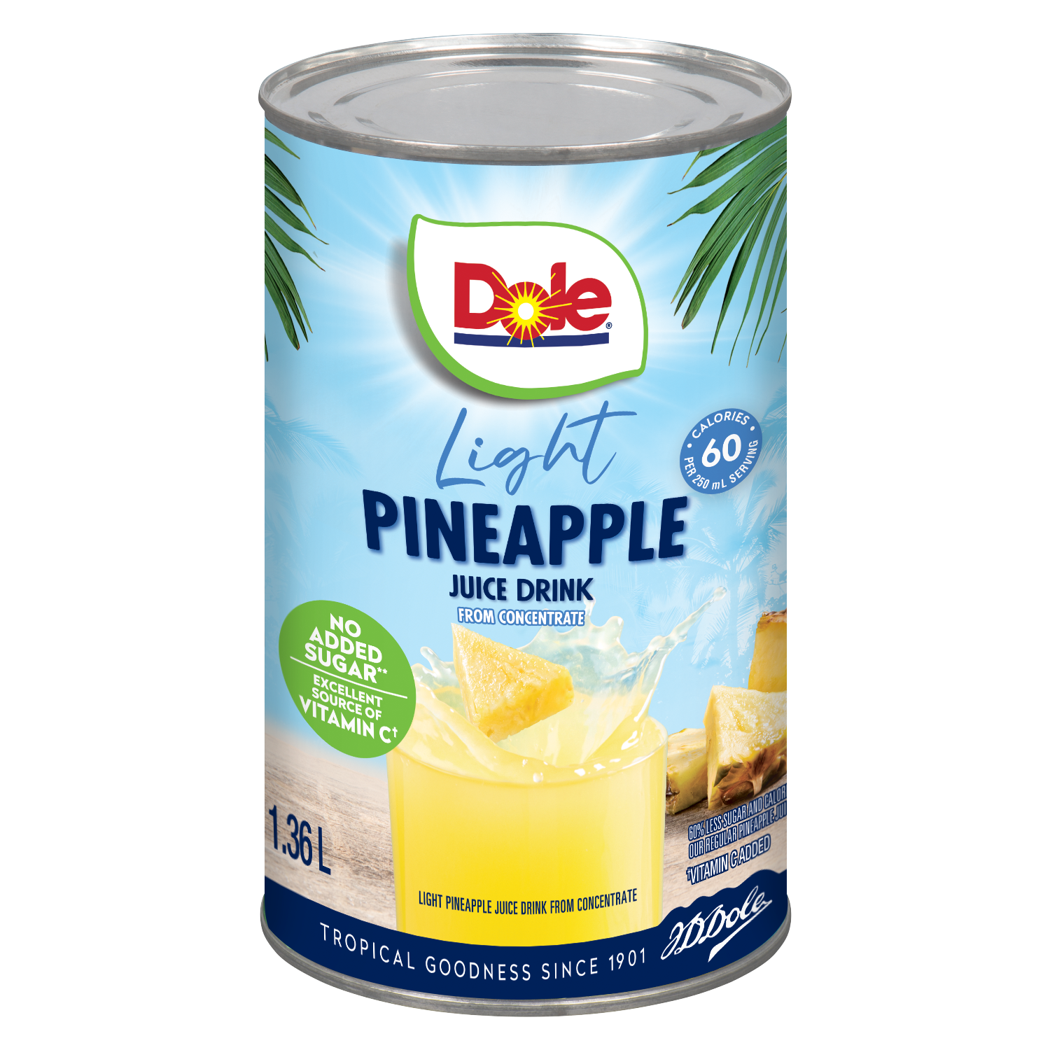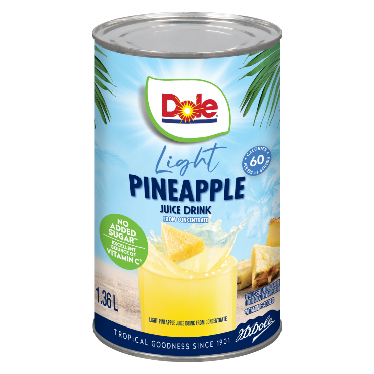 Enjoy the freshly pressed pineapple taste of the tropics that is uniquely Dole with 60% less sugar and calories than 100% pineapple juice.