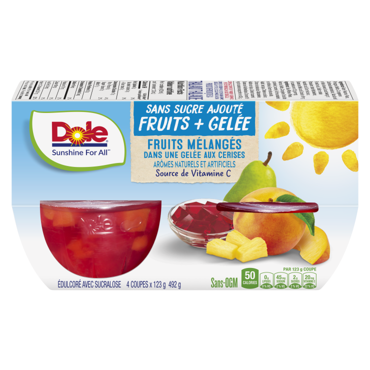Fruits mélangés à la cerise dans une gelée aromatisée sans sucre