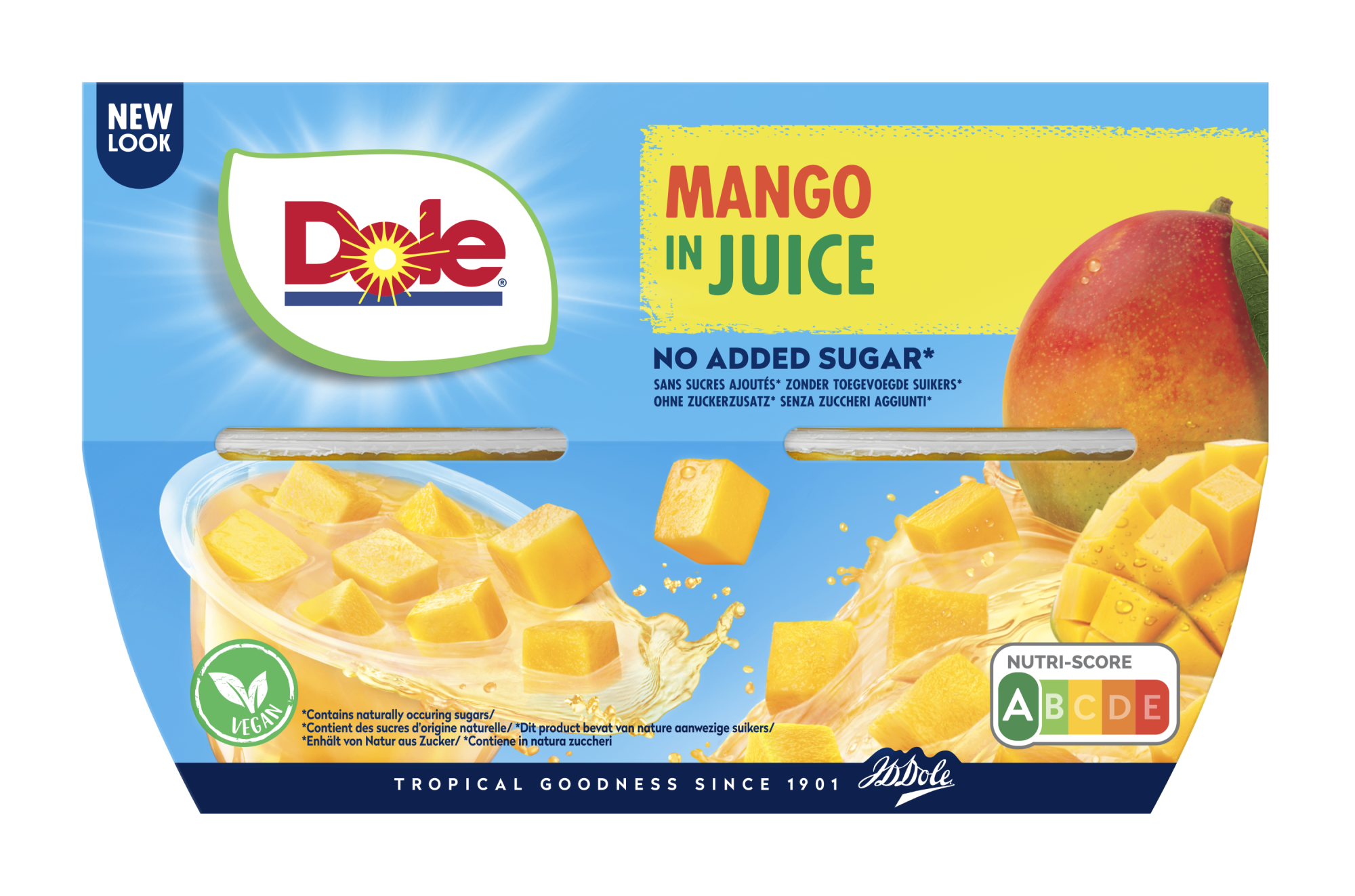 Reiche, sonnengereifte Mango, verpackt in Fruchtsaft ohne zugesetzten Zucker. Natürlich süß und unwiderstehlich saftig, enthält jeder Becher nur 72 Kalorien. Kein Kühlschrank? Kein Problem! Bewahren Sie es in Ihrem Schrank auf für einen leckeren Snack jederzeit. Perfekt als erfrischende Nachspeise, ein Energieschub am Tag oder ein fruchtiger Happen für unterwegs.
