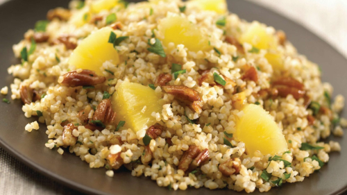 BULGUR-WEIZEN MIT ANANAS, PEKANNÜSSEN UND BASILIKUM