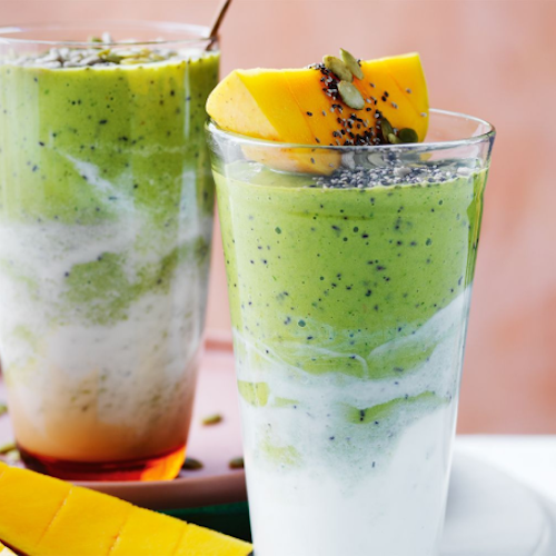 Fruit (Mago & Strawberries), Plant-Based Milk, Green Banana Powder, Pineapple Fiber Powder.