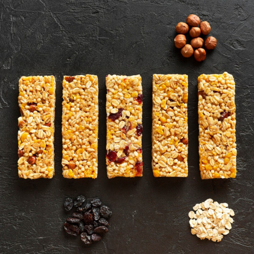 Oat Flour, Pineapple Fiber Powder, Brown Rice Syrup, Honey, Date Paste, Rice Crispies, Rolled Oats, Almonds, Pumpkin Seeds, Sunflower Seeds, Sunflower Oil, Peanut Butter.
