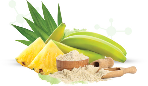The goal of this study was to identify the changes in gut microbiome and metabolic functional capabilities after the consumption of Green Banana Powder (GBP) and Pineapple Fiber Powder (PFP). Additionally, the study also evaluated changes in Gastrointestinal (GI) symptoms.