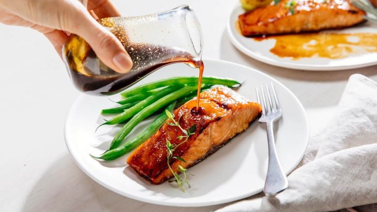 هذا المزيج الحلو والمالح يعطي سمك السلمون المشوي نكهة في غاية اللذة