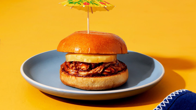Place half of the chicken mixture on the bottom of each bun and cover with one pineapple slice. Cover with bun tops.