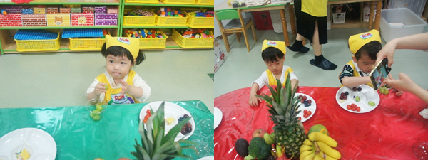 맛있는 과일 향에 친구들은 담고 먹느라 바쁜 모습이었고, 한입씩 맛보며 웃음도 끊이지 않았답니다.