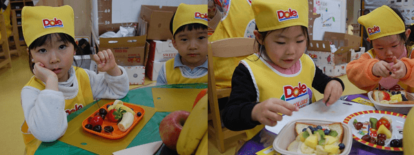 심장에 좋은 딸기, 나쁜 세균을 물리치는 바나나, 응가를 잘나오게하는 노란 파인애플,