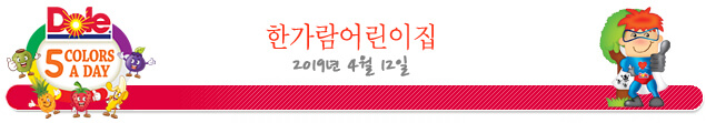 지금처럼 밝은 모습으로 우리 몸을 건강하게 해줄 5가지 색깔 빨강, 노랑, 초록, 보라, 하얀 과일과 채소 매일 골고루 먹고 더 건강한 어린이 되세요.