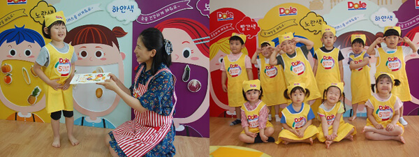 5가지 과일과 채소를 골고루 먹고 다른 사람들에게도 알려주기로 약속 하고 과일 박사 수료증을 받고 있답니다.