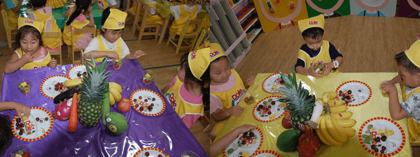 오색 칠판도 준비 되었고 우리친구들이 요리에 사용할 과일도 준비되었어요.