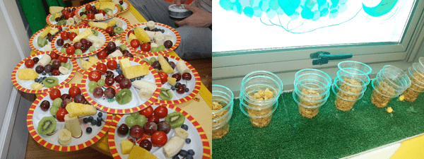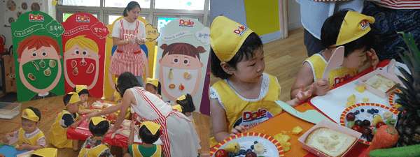 요리선생님의 설명을 듣고 과일과 채소를 이용해 과일샌드위치와 과일샐러드를 만들어 볼까요?