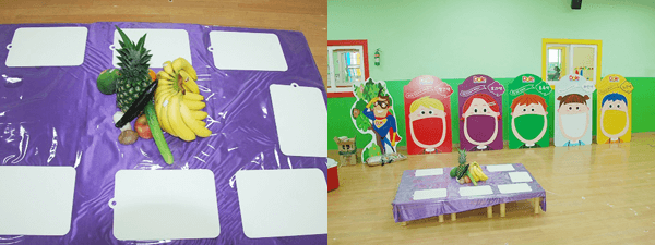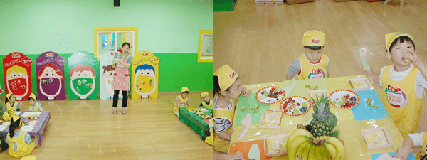 노란 색깔 과일과 채소를 찾으면서 우리 몸에 어디에 좋은지 영양선생님이 알려주고 계신답니다.
