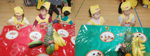 파인애플, 망고, 오렌지 등을 찾으면서 즐거워하는 우리 친구!! 최고예요~~