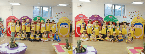 “파인애플” 하며 기념사진을 찍고 있는 우리 친구들