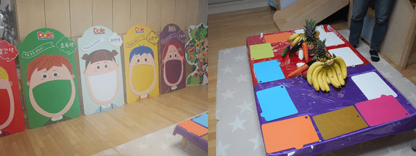 영양선생님의 수업이 끝나고 요리 선생님과 함께 건강한 과일과 채소를 이용해 요리를 시작해 볼까요?