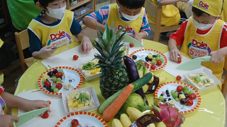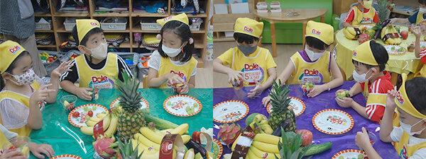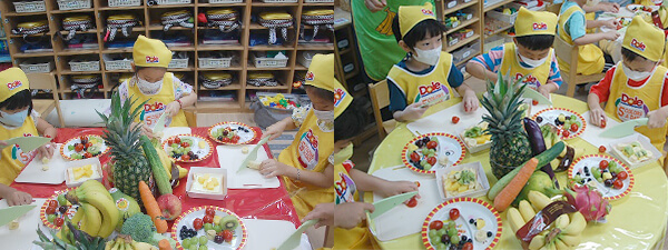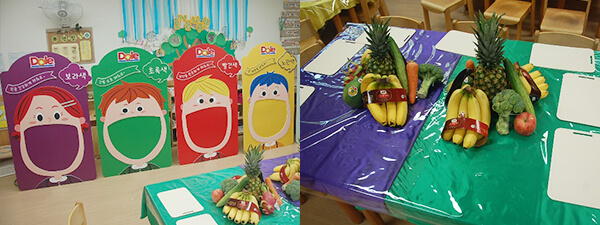 책상에는 과일과 채소 친구가 가득!!! 과연 어떤 수업이 진행 될까요?