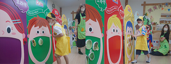 선생님께 “과일과 채소를 골고루 먹을 수 있어요.”라고 큰소리로 말하고 스스로 뿌듯해 했답니다.