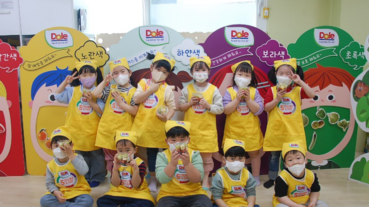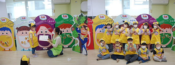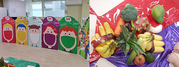 기념사진을 찍으면서 “과일과 채소를 골고루 먹어요.”라면서 약속도 했답니다.