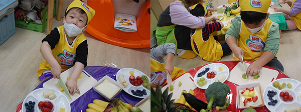 머리 똑똑 블루베리를 찾아 건강과일 샌드위치를 만들고 있는 친구들~ 참 잘했어요.
