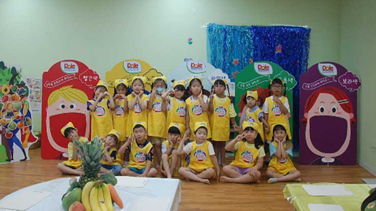 단체 사진도 찍고, 수료증도 받으며 과일과 채소를 골고루 먹을 거라고 약속을 했답니다.