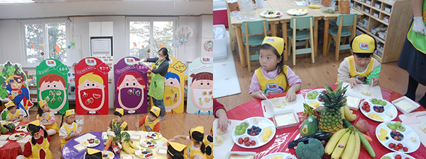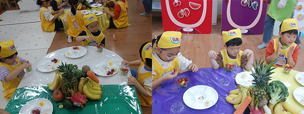 과일과 채소 향기가 교실에 가득~ 우리 친구들 입장해볼까요?