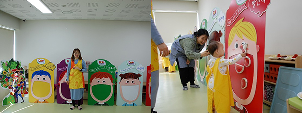 우리 친구들 깨끗하게 손 닦고, 노란 앞치마도 입고 준비 완료되었으면 교실로 들어오세요.