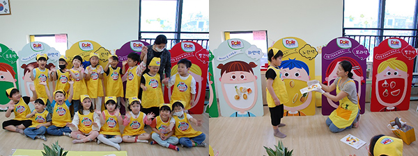 어요. 우리 친구들은 노란 앞치마와 두건을 하고 반 앞에서 기다리며 다들 오늘 수업에 기대를 했답니다. 기대하