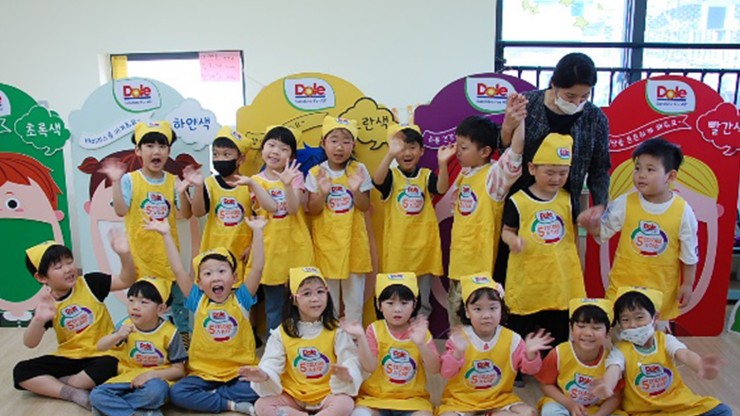 명칭을 하나씩 크게 외치면서 건강에 어떤 도움이 되는지에 대해 배웠어요. 이렇게 나머지 4가지 색깔 과일과