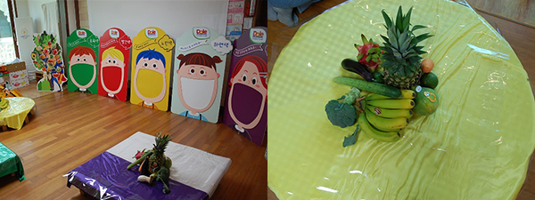 과연 과일과 채소를 이용해 어떤 수업이 진행 될까요? 예쁜마음 어린이집 친구들 나와 주세요.