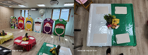 열매반 교실이 이렇게 변했어요. 향긋한 과일과 채소향에 우리친구들이 좋아할 모습을 생각하며 선생님들도 즐