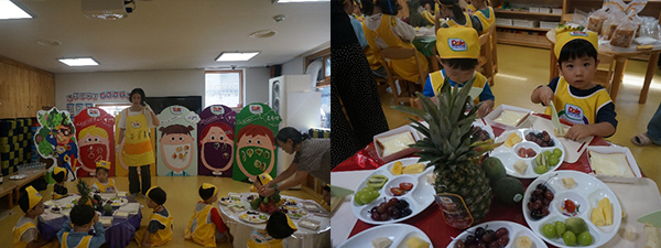 모두들 신나게 하는 모습에 선생님들도 뿌듯한 수업이었어요. 5가지 과일과 채소 골고루 먹고