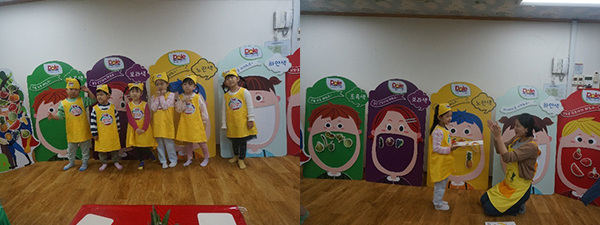 과일 박사들이 된 우리 친구들 기념사진을 찍고 있답니다.