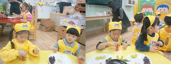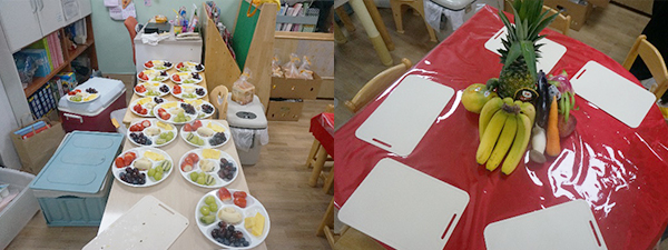 요리수업에 사용할 조각과일들도 준비하고, 영양수업에 사용할 신선한 과일과 채소들도