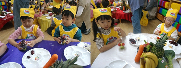 한 번 알아보면서 과일컵을 완성하고, 과일컵에 담지 못한 남은 과일과 채소를 간식으로 먹고 나니 요리 수업
