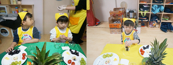 지 알려주셨답니다. 하얀 과일은 나쁜 바이러스를 이겨내도록, 노란색은 피부가 예뻐질 수 있도록, 초록색은 우