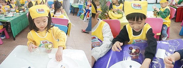 파인애플을 컵에 담으면서 우리 몸 어디에 좋은 지 옆에 있는 친구들과 이야기 나누면서 즐겁게 과일컵을 완성 하였답니다.