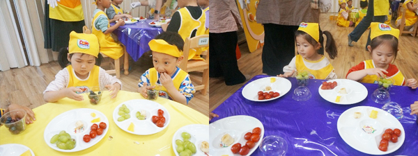 우리 친구들은 과일박사수료증을 받으면서 과자, 젤리, 초콜릿 보다 과일과 채소를 골고루 먹을 것을 약속했답니다.