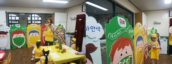 알록달록 과일과 채소 향기로 교실 안을 가득 채우고 오색 칠판 친구들도 친구들을 만날 준비가 끝났어요.