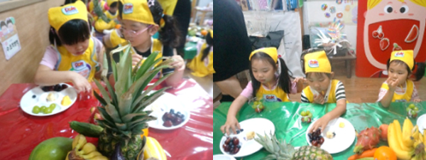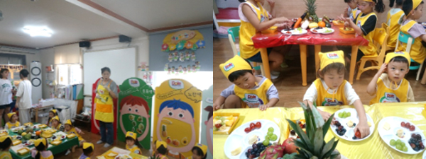 영양 선생님과 함께 5가지 색깔 과일과 채소를 각각 구별해보는 시간을 가졌답니다.