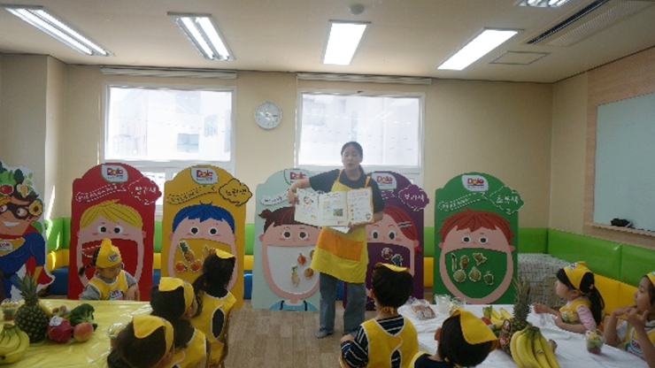 신선한 과일과 채소도 책상 위에 듬뿍 올려두니 우리 친구들을 위한 수업 준비가 완료되었어요.