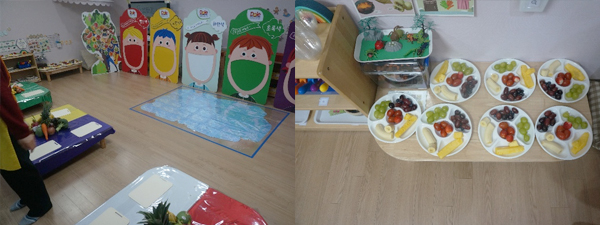 오늘의 수업 장소는 나무반이네요. 교실이 어떻게 변신했는지 함께 들어가 볼까요?