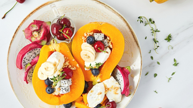 옐로우 파파야를 반으로 짤라 씨를 빼고 껍질을 벗겨준다.