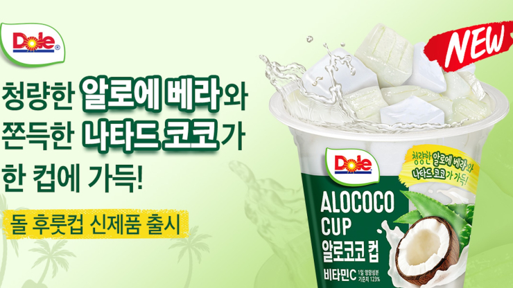 세계적인 청과 브랜드 돌(Dole)코리아가 이색 열대과일 ‘알로에’와 ‘나타드코코’를 간편하게 즐길 수 있는 컵과일, ‘알로코코 컵’을 출시했다.