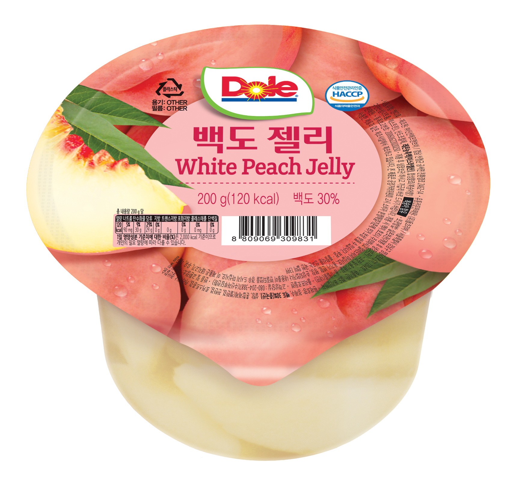 탱글탱글한 젤리 속 복숭아 과육이 풍부하게 담겨있는 상큼달콤 DOLE®(돌) 컵젤리입니다. 한 입 크기의 과일 조각이 들어 있어 젤리의 식감을 한층 더 살려준답니다 !