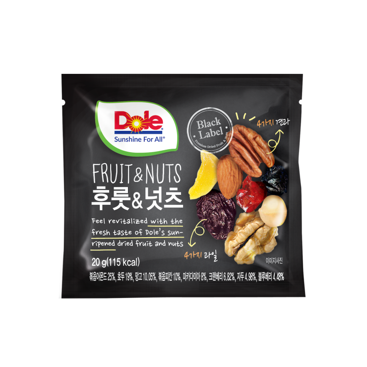 갓 볶은 것처럼 바삭 ! DOLE®(돌)이 엄선한 견과와 건과일을 조합한 후룻&넛츠 블랙입니다.