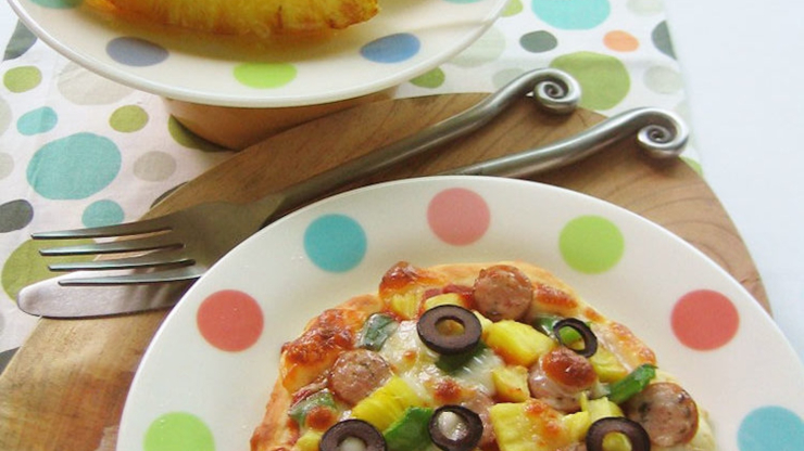파인애플은물기를 뺀 후 1cm폭으로 썬다.