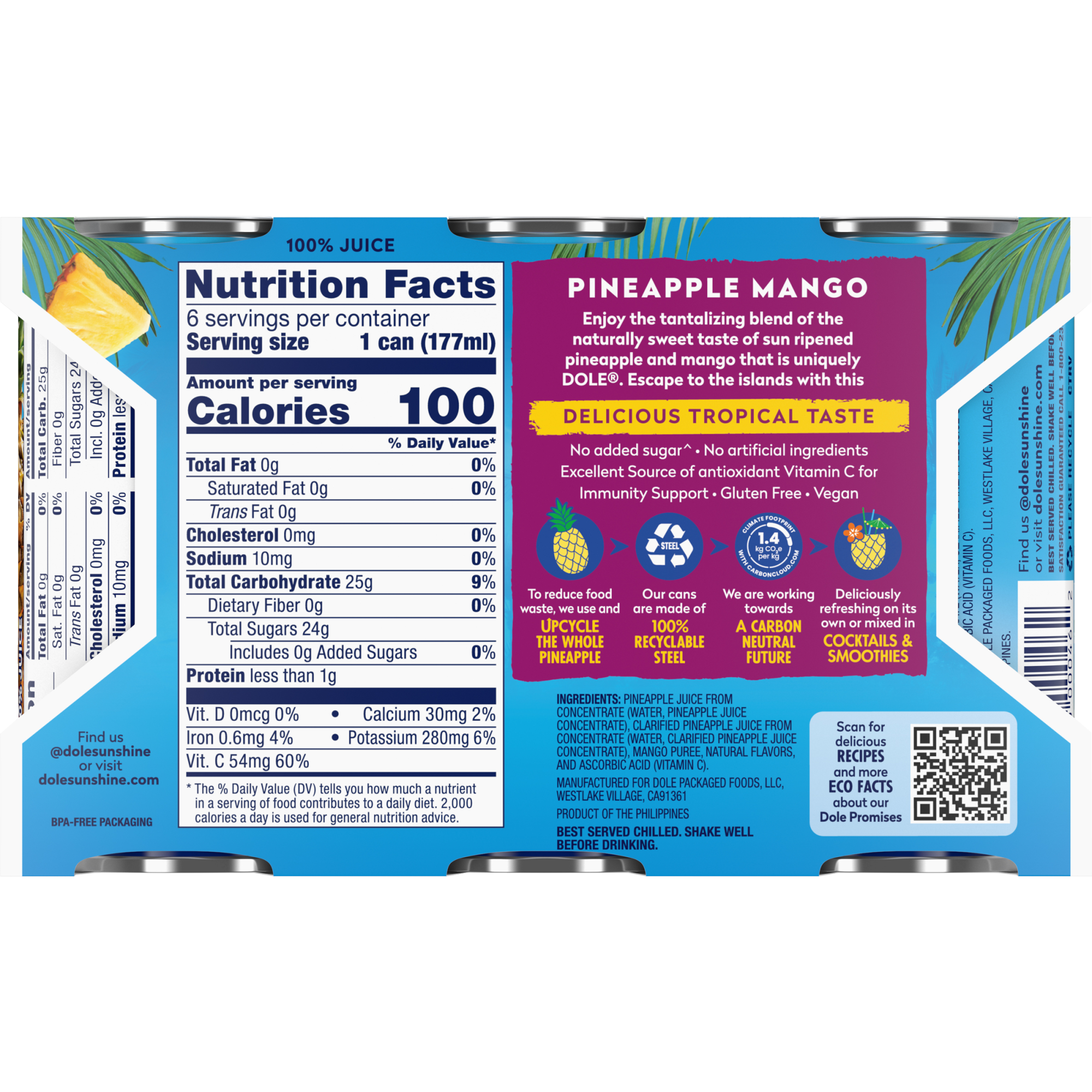 *100% Pineapple Mango Juice from concentrate with added Vitamin C and Natural Flavors