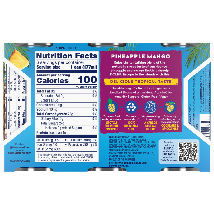 Dole® 100% Pineapple Mango Juice