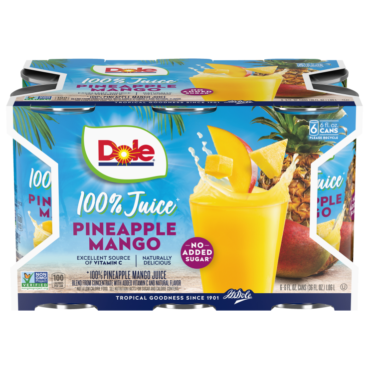 Pop open a can and enjoy the naturally sweet burst of 100% pineapple juice or a pineapple juice blend with every sip. DOLE® Canned 100% Pineapple Juice is made with added Vitamin C and no added sugar or genetically modified ingredients.